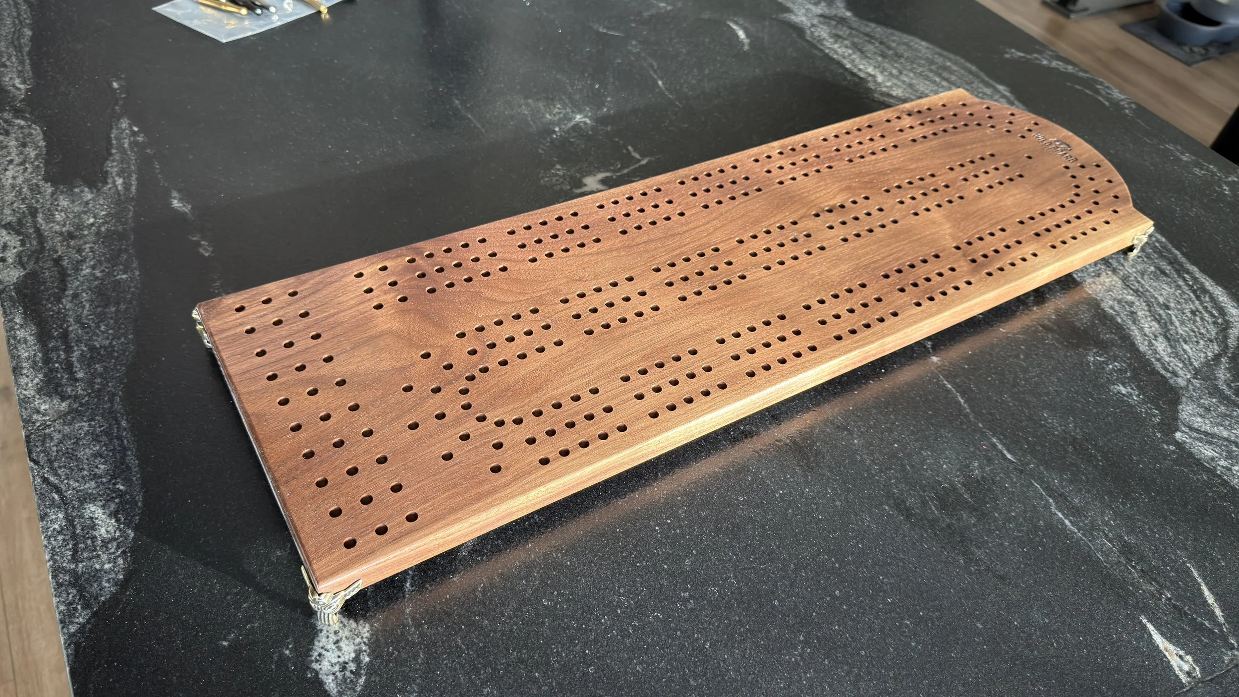 Mini 3 Track Cribbage Board – handcrafted from hand-selected hardwoods, complete with stainless steel pegs.